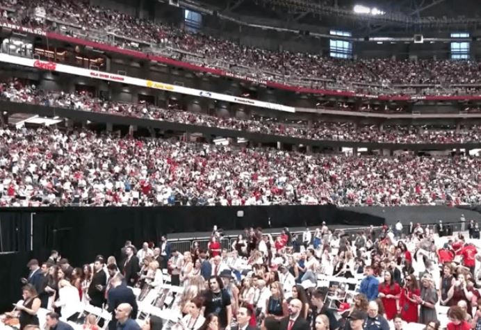O estádio State Farm, com capacidade para cerca de 63 mil pessoas, ficou lotado, com pessoas nas arquibancadas e também no gramado, segundo as autoridades locais. “Vários milhares” de pessoas ainda fazem fila para tentar entrar no estádio ou se acomodam na parte externa do local. Pelo seu tamanho e características, o evento será teste em momento de hostilidades.