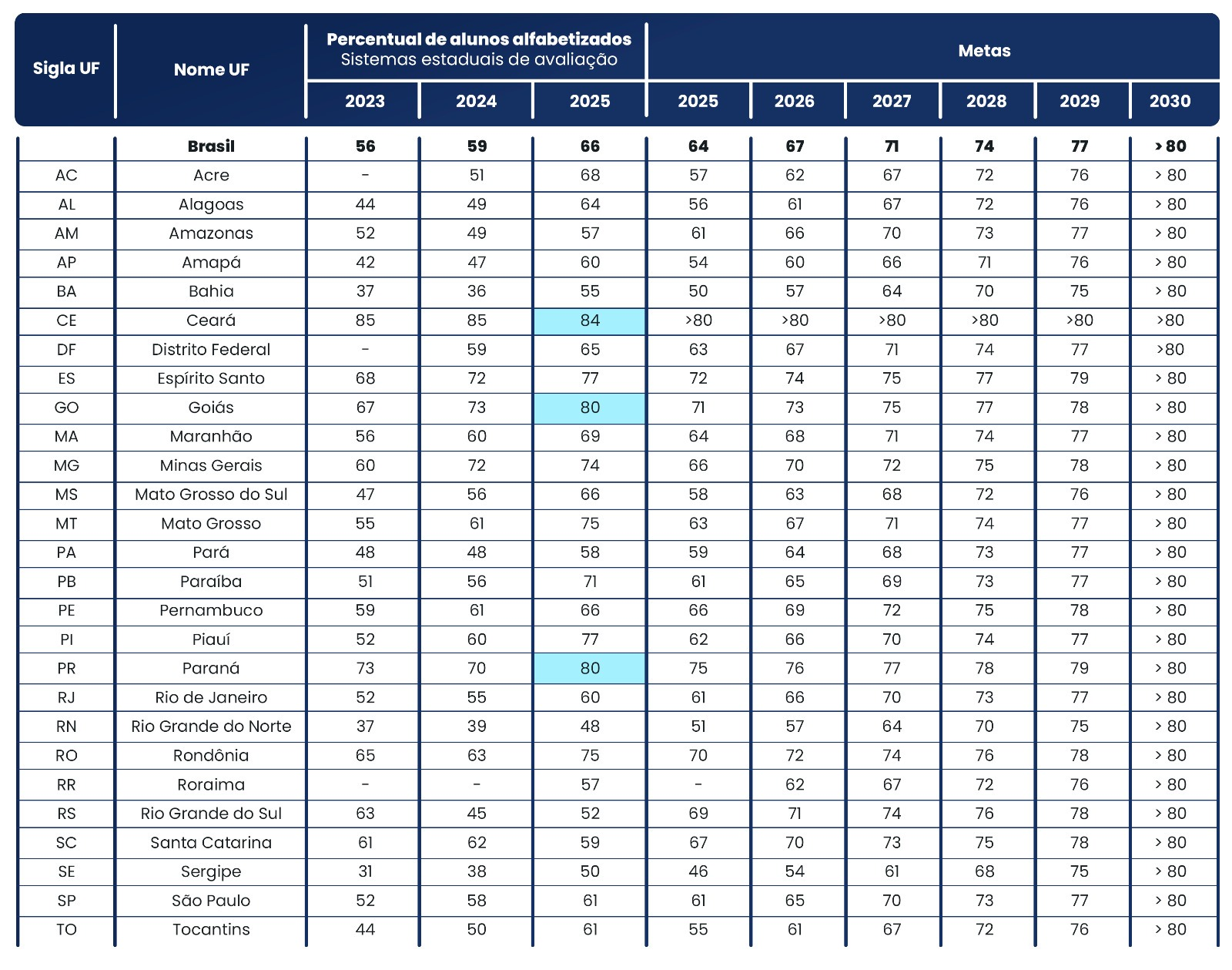 De acordo com os dados, apenas uma minoria das unidades da federação não conseguiu cumprir o objetivo em 2025, e entre elas está o Rio Grande do Norte. Mais grave ainda: o desempenho potiguar o coloca na última posição nacional, evidenciando um cenário crítico na educação pública.