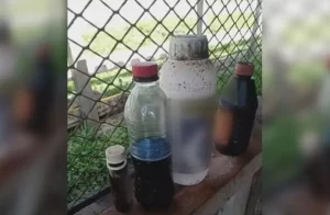 “O herbicida foi adquirido na forma líquida, e tinha uma cor escura, parecida com suco de uva, e foi vendido a granel, ou seja, o vendedor retirou de um frasco maior e acondicionou em um frasco transparente, parecido com garrafa de suco. Nesse frasco de meio litro de herbicida não tinha nenhuma etiqueta com alerta de perigo sobre o consumo, forma de uso, ou composição”, relata a delegada.
