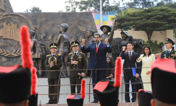 Na inauguração de um monumento em Caracas por ocasião do 80º aniversário do fim da Segunda Guerra Mundial no Pacífico, o político assegurou também que o país sul-americano continuará “em união nacional de todo o seu povo”, assim como de “todas as suas forças” militares e policiais. “Somos gente de bem, somos gente que ama a paz, mas que saibam, somos guerreiros ferozes quando se metem com nossa terra, com nossa história e com nossos direitos. Esta terra pertence aos venezuelanos, às venezuelanas, e não haverá vendedor da pátria, nem império que possa tocar e profanar o solo sagrado que nos foi legado pelos libertadores”, bradou.