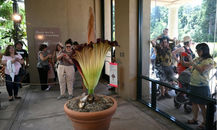 Uma flor-cadáver, conhecida cientificamente como Amorphophallus titanum, desabrochou em Camberra, a capital da Austrália, marcando a terceira vez que isso ocorre no país em um intervalo de três meses. O evento aconteceu nos Jardins Botânicos Nacionais no dia 8 de fevereiro, e a flor começou a murchar no dia 10, após um breve período de floração. Originária das florestas tropicais do oeste de Sumatra, essa planta rara tem um ciclo de floração que ocorre apenas a cada 7 a 10 anos, durando apenas alguns dias. O seu odor característico, que é bastante desagradável, serve para atrair polinizadores, especialmente moscas. Estima-se que existam cerca de 300 exemplares dessa espécie na natureza.