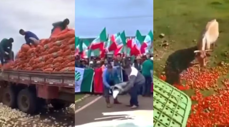 Outros vídeos compartilhados nos últimos dias mostram o descarte de cebolas e tomates.