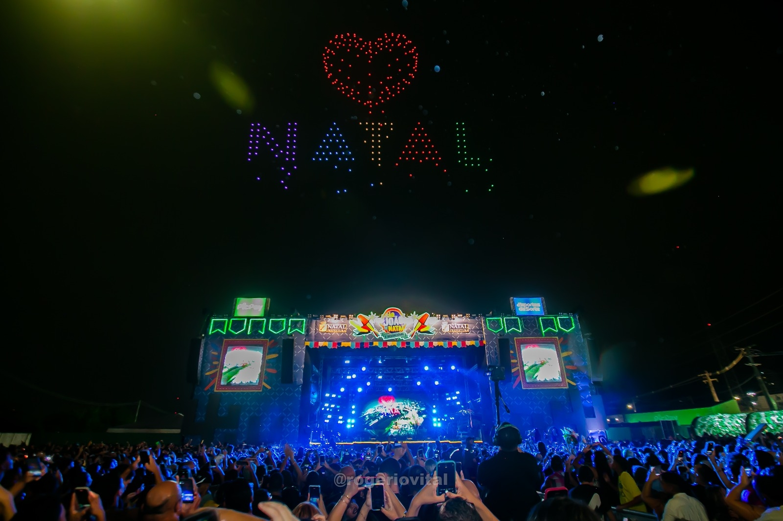 Depois foi a vez de Alok transformar a Arena em um verdadeiro espetáculo. O DJ fez um show eletrizante, com estrutura de luz e som de alto nível, e surpreendeu ao incorporar um show de drones ao final da apresentação. Os equipamentos sobrevoaram o céu de Natal formando imagens em homenagem à cidade, como o Morro do Careca, um dos principais cartões-postais da capital potiguar.